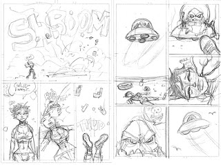 As usual Jimmy Calabrese of the band Calabrese will be writing the dialog for these pages, swing by their webpage they've got a comic coming out based on their exploits fighting monsters and playing rock music, its pretty awesome there's even a couple of pieces of art by yours truely in it.